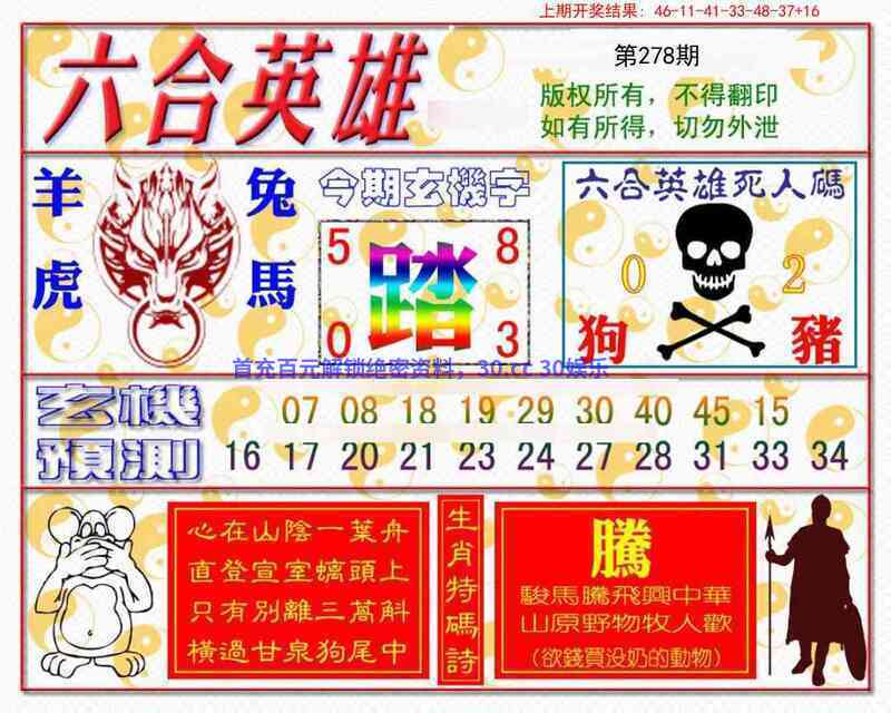 282期:必中天机/特七决/正版欲钱料/特码生肖诗/澳门天机诗